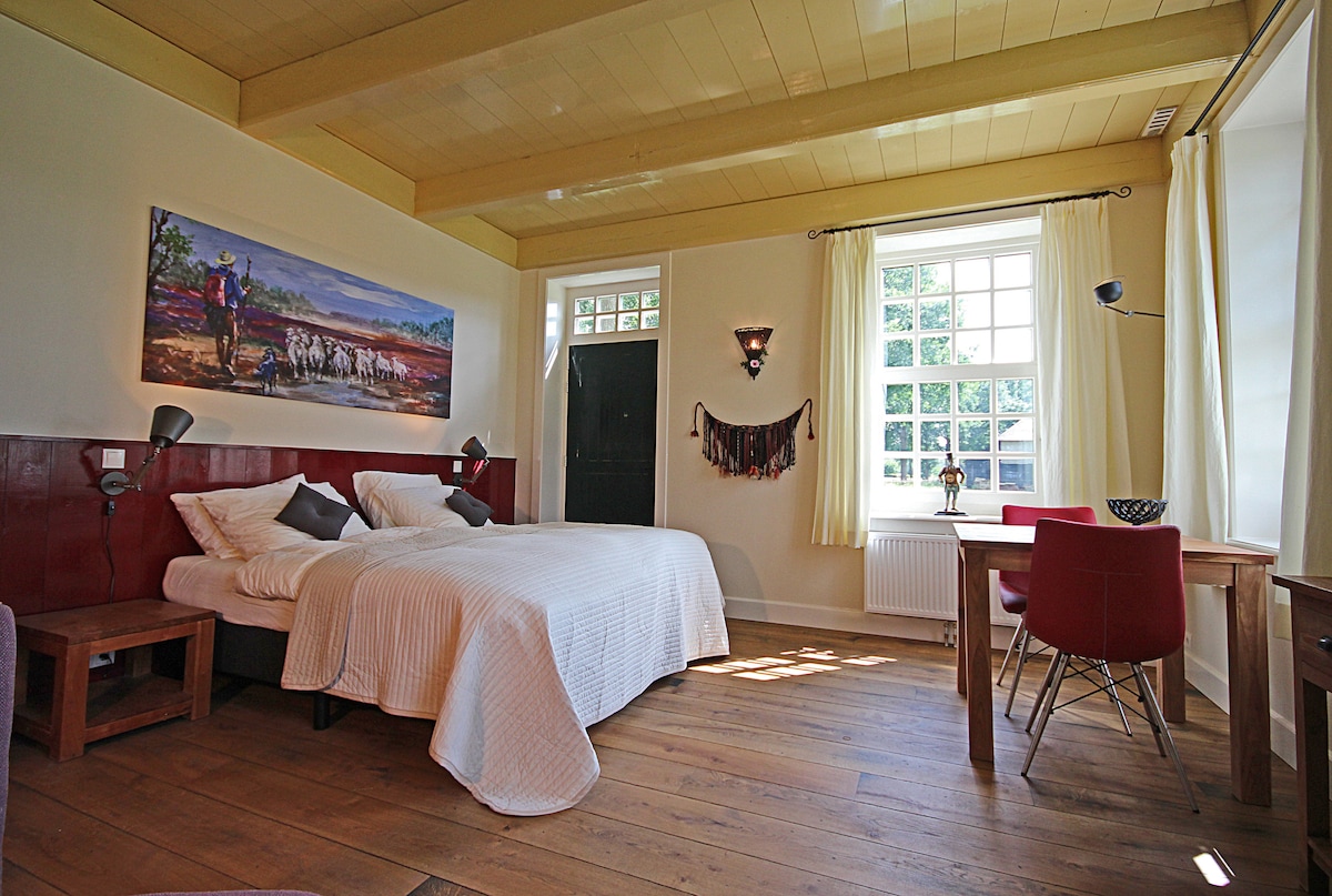Rust en ruimte in de Drentse natuur en de tijd om even op adem te komen. Dat is wat je ervaart in ons gastenverblijf. In onze tuin kom je naast ons gezin verder niemand tegen op een dag. Veel geluid van de vogels en 's avonds een schitterende sterrenhemel bij helder weer. Kortom, de ultieme plek om je even terug te trekken. Om extra te ontspannen is er op verzoek biologisch ontbijt, biologisch diner (vrijdag en zaterdag) en wellness mogelijk.