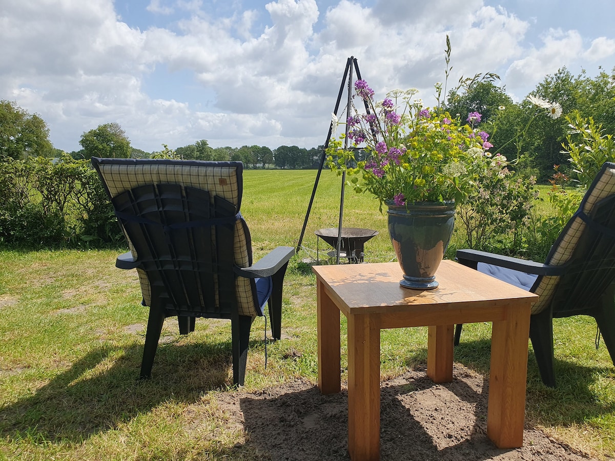 Rust en ruimte in de Drentse natuur en de tijd om even op adem te komen. Dat is wat je ervaart in ons gastenverblijf. In onze tuin kom je naast ons gezin verder niemand tegen op een dag. Veel geluid van de vogels en 's avonds een schitterende sterrenhemel bij helder weer. Kortom, de ultieme plek om je even terug te trekken. Om extra te ontspannen is er op verzoek biologisch ontbijt, biologisch diner (vrijdag en zaterdag) en wellness mogelijk.