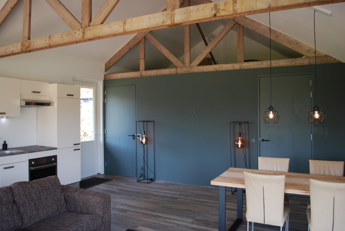 Vrijstaand gastenverblijf in het groen, met volop rust en privacy. Aan de rand van het bos, net buiten Assen, logeer je in een volledig zelfstandige woning met eigen entree en tuin. Vanuit de woonkamer kijk je uit over de landerijen en hoor je vooral vogels en wind. Hier combineer je de stilte van de natuur met het comfort van een modern en knus ingericht huisje.