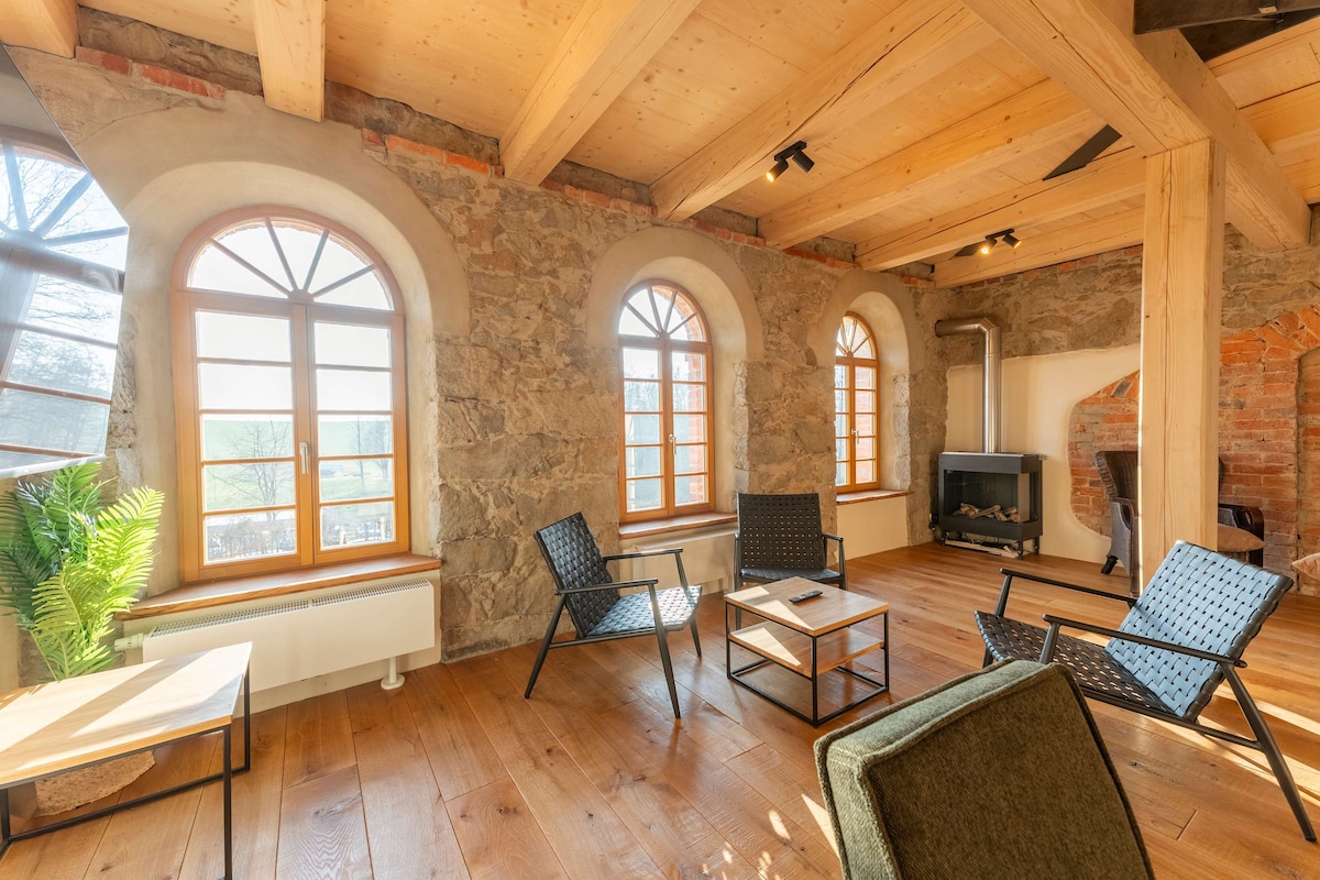 德累斯顿附近的Hexenburg私人桑拿浴室、漩涡浴缸、壁炉