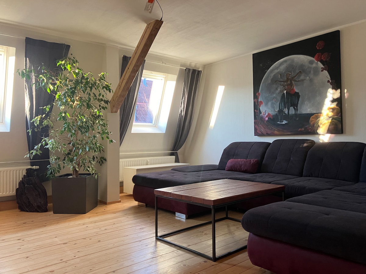 My flat can comfortably accommodate 6 people, and an extra bed can also accommodate up to 8/9 people. I have 2 bedrooms, each with a double bed and a single bed. In the blue room an additional air bed can be provided for 2 people. It is the larger room with a couch, projector & screen. In the orange room there is a 1.60 m double bed and a 1.40 m wide loft bed. Since the ceiling height is not very high, I like to offer this bed as a single bed, but even in this one you can easily sleep in pairs.