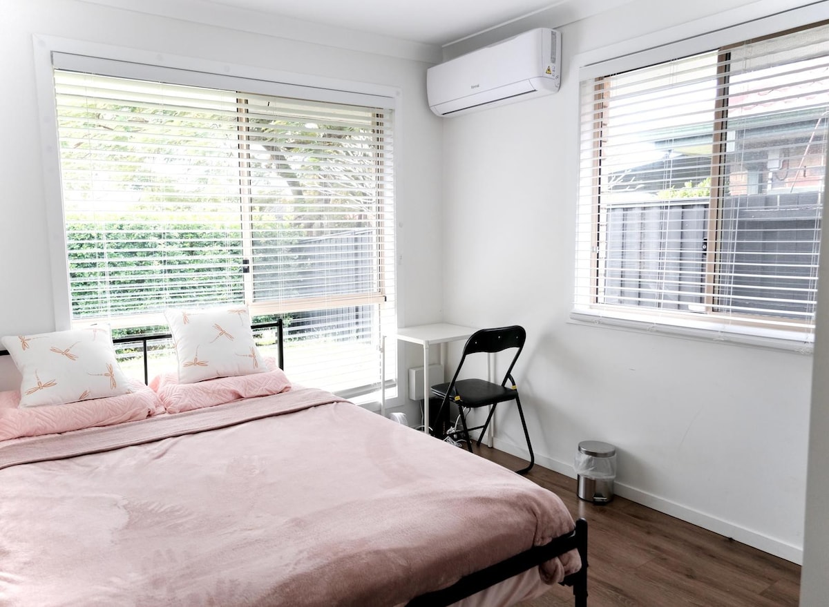 🌿 Bright & Private – brand-new 1-bed + living unit with its own entrance, no shared spaces. 🛋 Stylish & Cozy – modern furniture and appliances for a comfortable stay. 📺 Enjoy free Netflix access during your stay 🛏 Master bedroom – private bathroom and walk-in wardrobe. 🛋 Flexible sleeping – living room with two single sofa beds, perfect for up to 3 guests (children 7+). 🧊Enjoy year-round comfort with central air conditioning and heating. 🌞 Light-filled – airy, homely space that feels jus