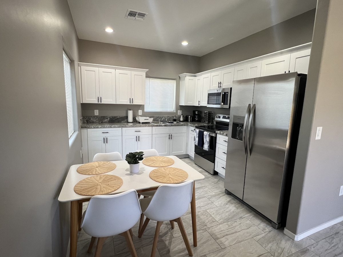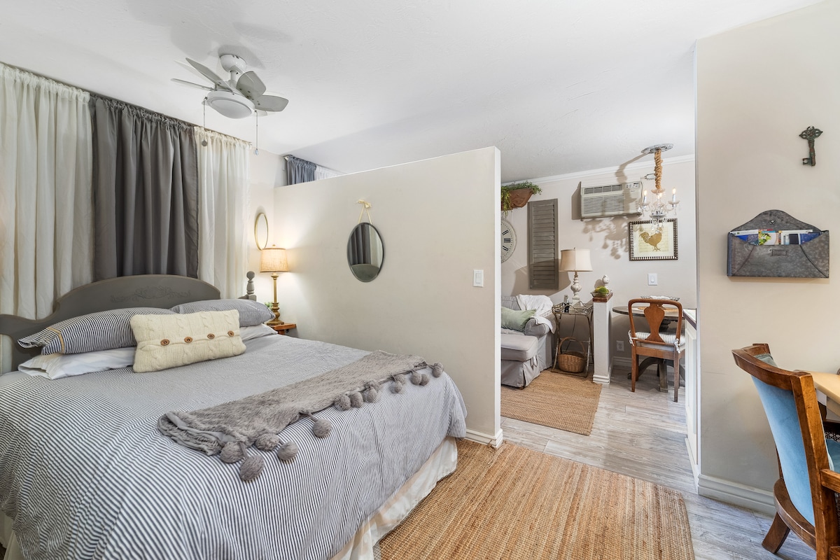 Welcome to our luxurious King Suite Guest House in the heart of Tucson! This beautifully furnished retreat offers a spacious floor plan with a brand new king-size bed, a relaxing living area, a dedicated work space, and a fully equipped kitchenette. Centrally located, you're just 15 minutes away from downtown Tucson's vibrant scene and surrounded by scenic desert landscapes. Immerse yourself in comfort and convenience for an unforgettable Tucson getaway. Book your stay now!