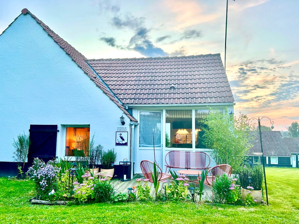 Maisonnette avec parking privé fermé en dehors de la route, à 5 mn de l'autoroute, à 20 mn des plages et de la Belgique, près du mont Cassel et du village d'Esquelbecq (Village préféré des Français), à 5 mn de la belle ville de Bergues. Proche de toutes les commodités et des producteurs locaux :fromage, beurre, légumes bio Une chambre à l'étage ,lit 160x200 avec linge de lit et de toilette Coin repas, cuisine équipée (four, plaque de cuisson, réfrigérateur-congélateur) expresso Petite terrasse