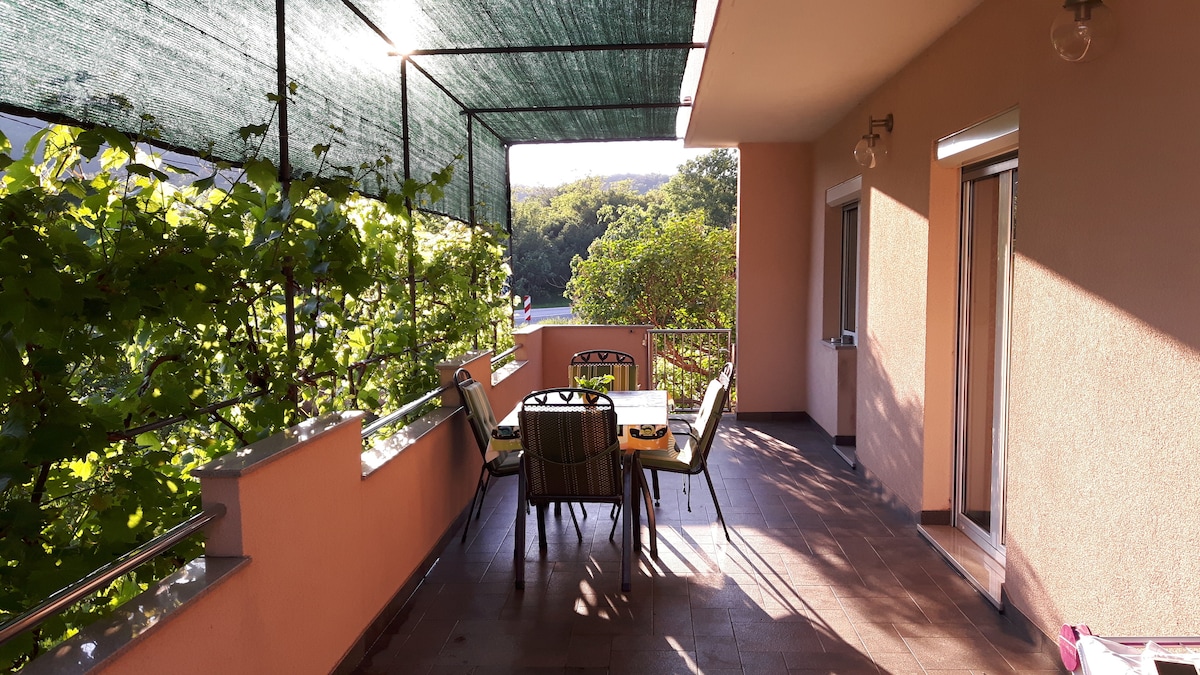 The apartment is located between Novi Vinodolski and Selce, its in a very quiet area so you can relax and injoy your vacation. It's a new build apartment. The beach in located in Novi Vinodolski or Selce and its about 5 km away. If you want sandy beach, there is Crikvenica and its about 8 km away from the apartment. We have a grill area with a stone table and wooden benches were you can eat or just relax and have a cold drink. The parking is very close to the apartment. Contact us for anything.