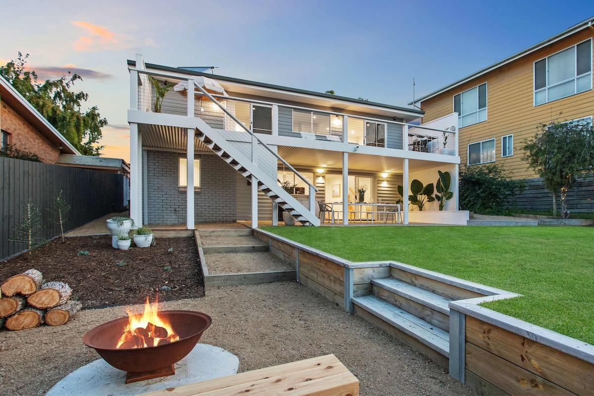 Whether you're seeking a peaceful getaway or a place to entertain, Luxury Oceanview Retreat is a stunning Palm Springs-inspired oasis, with breathtaking views of the Mornington Peninsula coastline. Start your day with a cup of coffee on the deck, soaking in the panoramic views, BBQ with loved ones in the undercover entertaining area or unwind under the stars with a fire pit, perfect for those winter evenings.