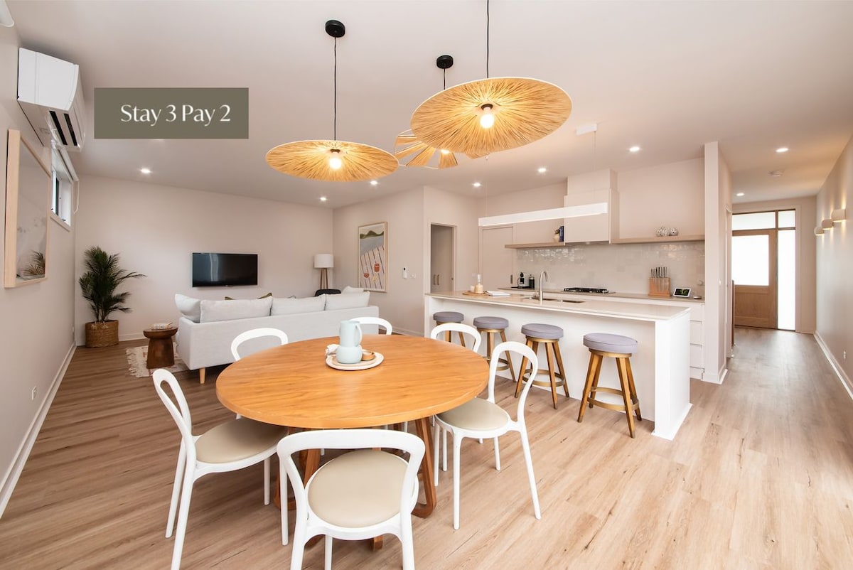 The discerning traveler should look no further than this stunning Cowes townhome for their next escape to Phillip Island. Sleek and modern with upgraded luxury finishes, the two-level residence has 3 bedrooms, 2.5 baths, comfortably accommodates up to 6 guests. Located within walking distance to shops and the beach, the home has all the amenities needed for a relaxing yet seamless stay with spacious interiors, a chef’s kitchen, and private outdoor entertaining area.