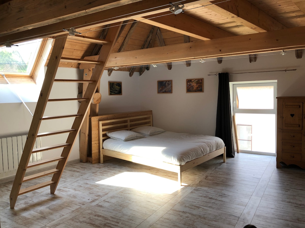 Dans cette ancienne ferme, venez poser vos valises pour une nuit, un weekend, une parenthèse au milieu de vergers bio sur un terrain de 3000m2 entièrement clôturé. Un loft entièrement rénové vous est réservé, entre pierres, chaux et poêle à bois. Venez tester la chaleur si particulière qu'il procure. Vous pourriez croiser un chat câlin, un chien joueur ou une poule vagabonde. Ce lieu est une invitation au calme, où chacun profite de son espace, tout en harmonie avec la nature et son voisin.