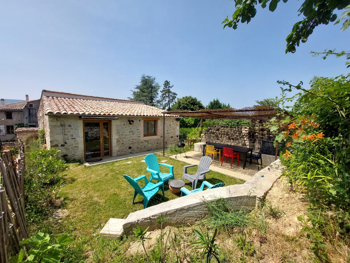 Charmante maisonnette dans vieux séchoir, ancienne bergerie entièrement renovée avec goût, elle est indépendante dans grande propriété et de plain-pied avec un accès à la piscine naturelle et au jardin. Stationnement privé et couvert. Proche du centre du village. Idéalement située pour les amoureux de la nature et des randonnées, à 2 pas du Vercors et à 30 minutes de Grenoble, 30 minutes de la gare TGV de Valence, 1 grosse heure de Lyon. Détendez-vous dans ce logement calme et élégant.