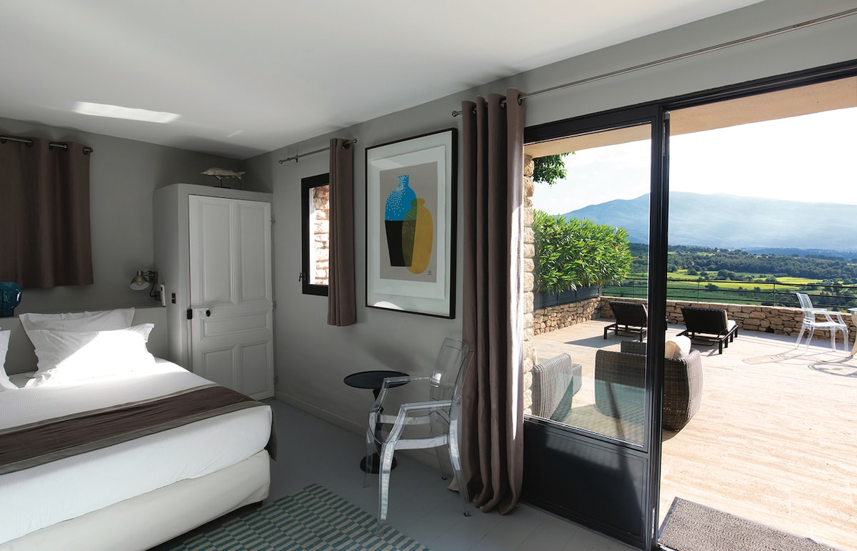 The Villa’s Classic 18sqm Rooms are the perfect cocoon for your weekend in Drôme Provençale. Brightly lit, decorated in soft hues and overlooking the superb park or patio. Each room has its own decor, its own universe, but what they all have in common is an atmosphere conducive to relaxation and well-being. Your stay alternates between moments of rest in your room, swimming in the outdoor pool, strolling in our park and discovering the treasures of our region.