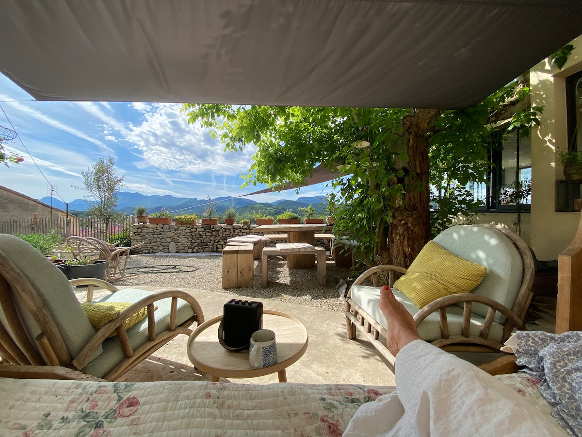 Notre maison est un havre de paix et de confort. Plein sud pour les amoureux du soleil, à l’intérieur, elle reste fraiche pour des siestes et nuits délicieuses. Elle surplombe les toits et sa vue sur les montagnes offre chaque jour des levés et couchés de soleil magnifiques. Elle est à 1 minutes à pied de la rue principale, de tous les plaisirs de la ville (commerce, cinéma, piscine ..) et de sa nature environnante : rivière, chemin de randonnées… Nos Literies sont de très bonnes qualités.