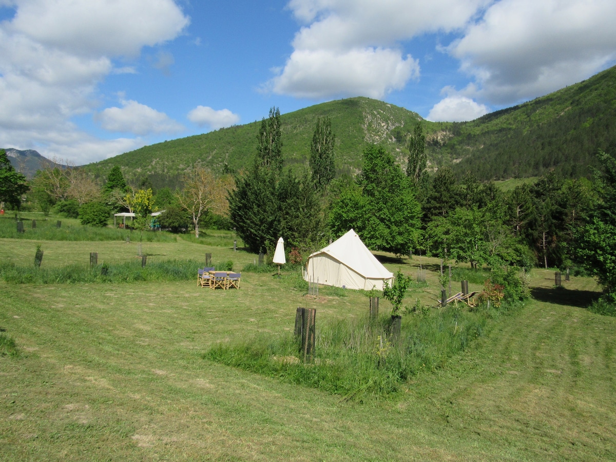 Located against the stunning backdrop of the French Alpes - Glamping La Source features three fully furnished Bell Tents and two Lotus Belle 'Stargazer' Tents nestled amongst 5 acres of beautiful trees and grasslands offering a tranquil place to relax and unwind. Our Restaurant offers Ice cold drinks, breakfast and freshly prepared Evening Meals (reserved in advance) and freshly cooked bread and croissants are available to order the night before.