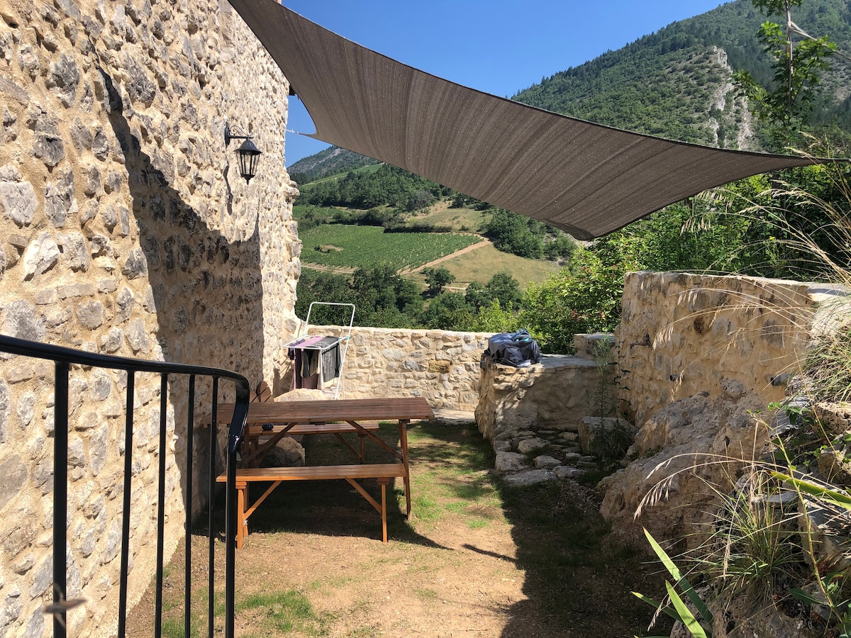 Charmante maison en pierres très lumineuse pour 2 personnes, dans le village perché médiéval de Rochebrune. Vous profiterez de cette maison authentique, au calme, avec différents terrasses avec vu panoramique. La maison se situe à côté d'une petite église du 12ème siècle. Idéal pour se ressourcer accès direct à plusieurs circuits de randonnées. Y-compris, draps et serviettes, WiFi, machine Senseo, Netflix, BBQ, parking Il n'y plus qu'à poser vos valises et vous détendre! Proche Sainte Jalle
