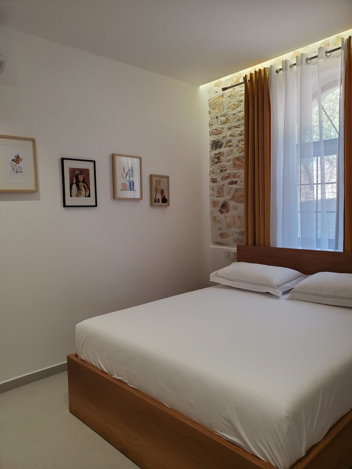 Just 2 min walk to the heart of the old town, the ground floor of this 2 story tradional stone house with views of the mountain and castle, is for private use and includes a bedroom, shower/toilet, kitchen, desk space, sofa and lots of courtyard space. Ideal for a couple/or friends sharing a double bed. There is also a sofa bed in the kitchen area for a third person of the same party (child, teenager, young at heart friend (up to three people ) on relaxing holiday.