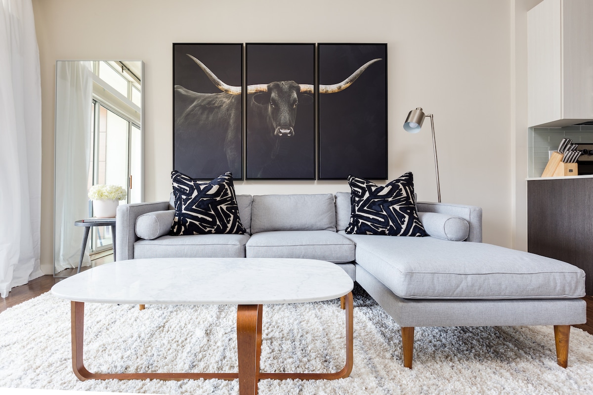 Atlanta Luxury Rentals is the exclusive provider of luxury accommodations at Ponce City Market. Rich blue walls, Italian leather furnishings and silver, white and midnight blue accents generate a relaxing environment to call home away from home. Each Ponce City Market unit is fitted with elevated thread count linens, a fully equipped kitchen, washer and dryer, and garage parking. 25+ years old to book Parking is $19 per night in secured garage