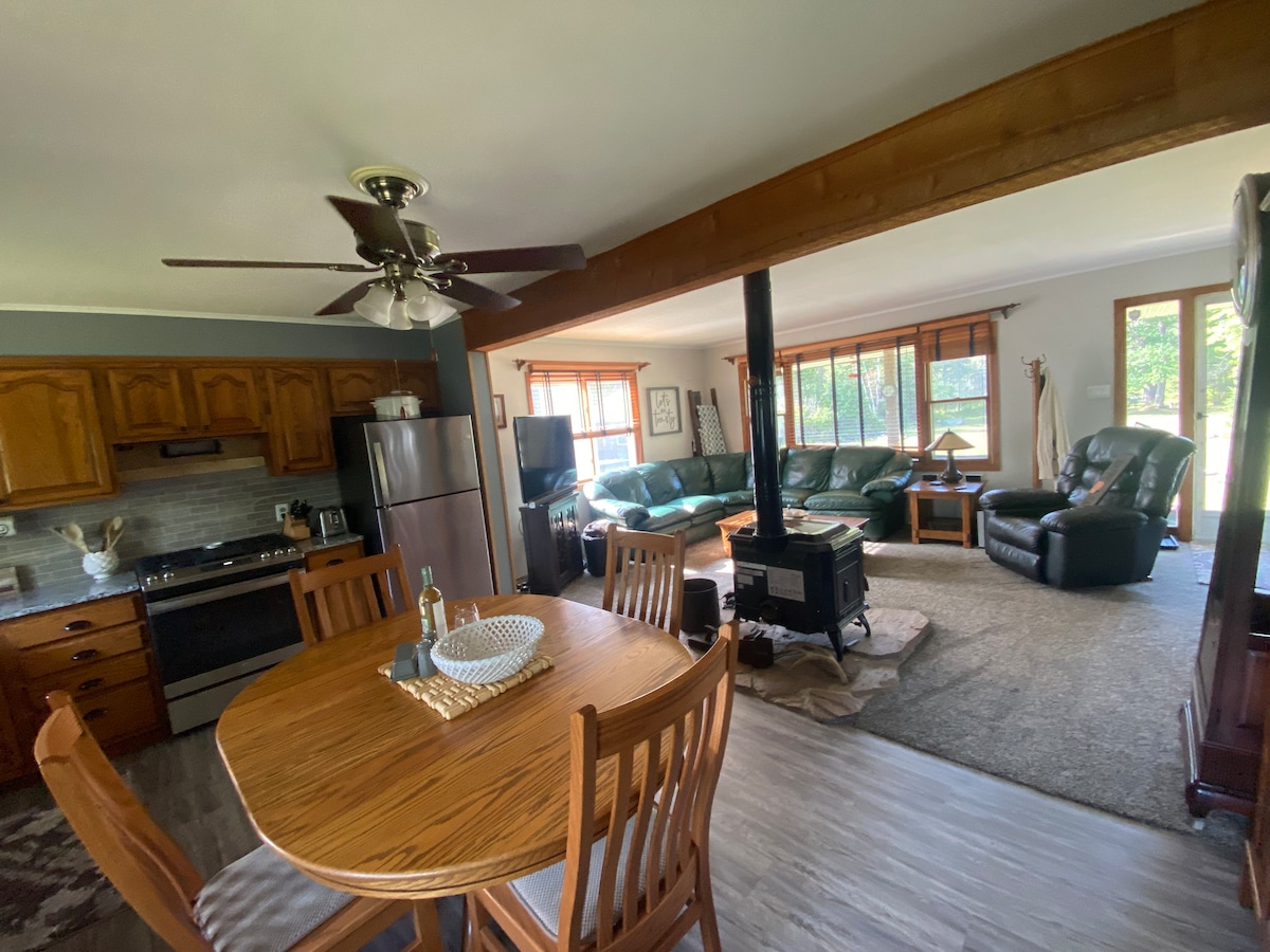 Peaceful home nestled in the northern woods of the UP on the St. Mary's river/ Munoscong Bay, a world class walley,pike and smallmouth bass fishery. With 200+ ft of sandy beach waterfront , there are views of the Canadian shores across the bay,freighter ships passing by, abundant wildlife and sunsets over they bay all from a beautiful firepit at the waters edge. Into more play then, hiking,biking,boating,kayaking,fishing,swimming, SUP or just plain relaxing are right out the back door.