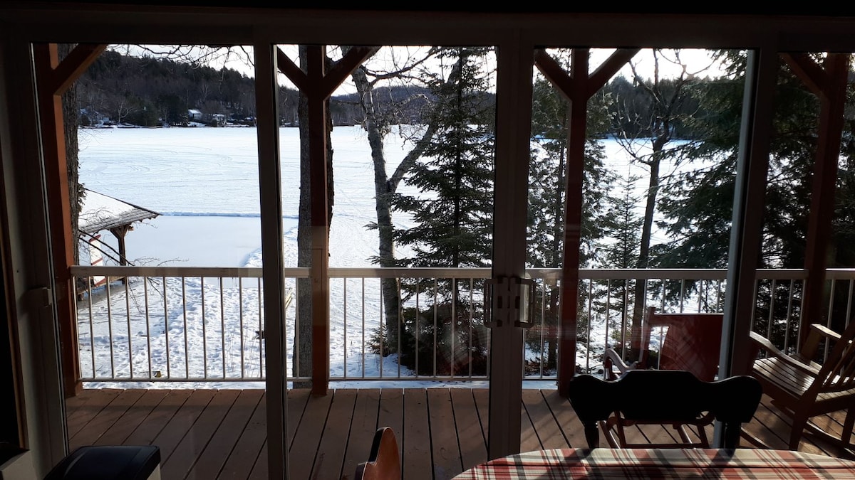 Beautiful log wood cottage with a cathedral roof and a wood stove, located right on the shores of Lac Desmarais in Estrie. The dock is the ideal spot for relaxing. The private lake is a protected area (no gas-powered motors allowed) and is brimming with trout and other species of fish each year. A paddle board, canoe and kayak will be at your disposal. The hot tub is available for use all year round. Starting January 2021 : 1 booking = 1 tree replanted through Tree Canada