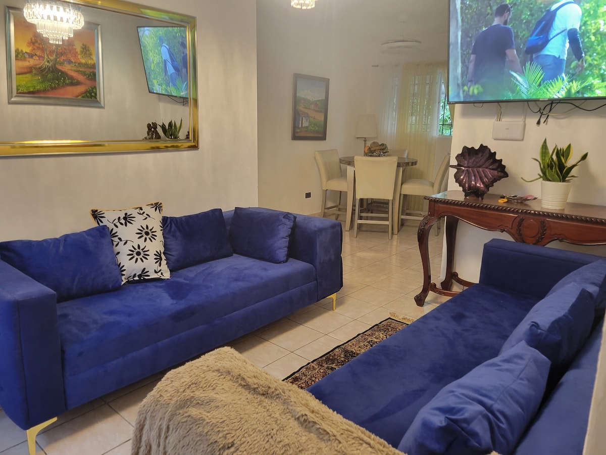 Discover comfort and convenience at our 3-bedroom retreat, located on a quiet hill just a short drive from Nagua’s beautiful beaches and attractions. The house offers Wi-Fi, AC in all rooms, ceiling fans, an inverter, and free parking. From its elevated spot, you can catch a distant glimpse of the ocean and enjoy cool breezes in a quiet, safe area close to restaurants, shops, and local attractions.