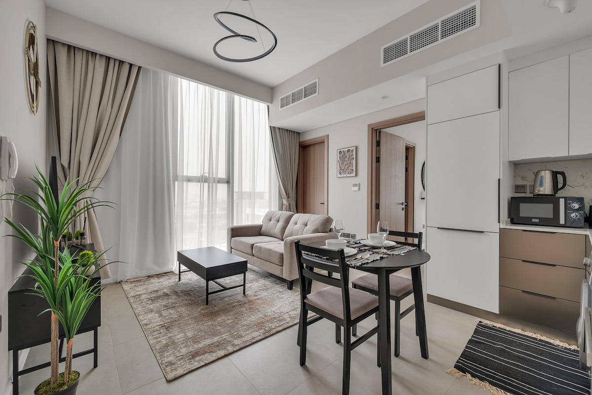Enjoy a stylish experience at this centrally-located place. Relax and unwind in this peaceful and elegant abode. The place is full of features and gives you an opportunity to stay in the green community with Burj Khalifa view , lovely 1 bedroom apartment with all facilities. Enjoy the tranquil lush green landscape The site ☑️10 minutes to Burj Khalifa & Dubai Mall and SHZ Road ☑️14 minutes to Dubai airports ☑️10 minutes to Ras Al Khor Wildlife Sanctuary ☑️18 minutes to Palm Jumeirah