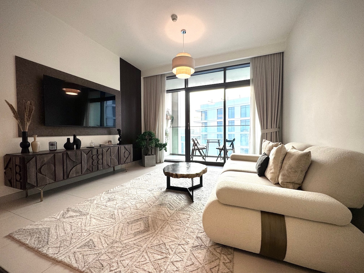 Stay in a uniquely styled 1-bedroom apartment in the luxurious waterfront Palace Residences at Dubai Creek Harbour. This 66 sqm home is fully equipped with everything you need, featuring a bright living area and private balcony with breathtaking skyline views. Guests enjoy premium amenities including a top pool, modern gym, and 24/7 security. Perfectly connected, just 15 minutes from Downtown Dubai and the airport, it’s the ideal base for your Dubai stay.