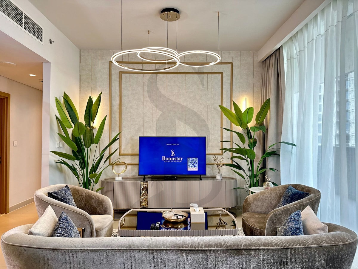 This luxurious 1-bedroom apartment offers comfortable living with all the amenities you need, located in The Grand in Dubai Creek Harbour, an amazing area in Dubai. Enjoy free access to a heated Pool with a view, gym, and free parking. The living room has a comfy couch and HD TV with Prime Video, and AppleTV+ for you! The balcony opens an AMAZING VIEW. The apartment is FULLY-EQUIPPED with everything you could need and we are happy to provide whatever is needed during your stay!