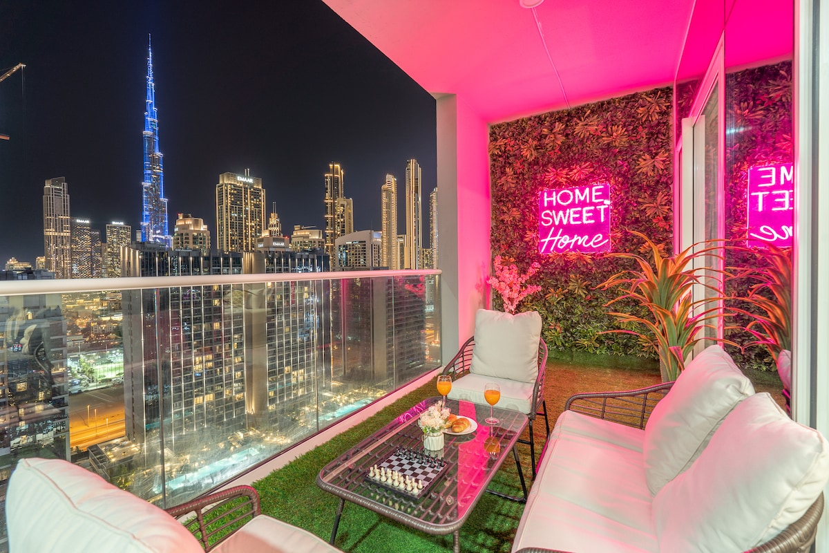 Chic studio apartment in the heart of Dubai, boasting a killer skyline view from the balcony. Just a quick 7-minute walk to Dubai and the mighty Burj Khalifa. Fully loaded for your trip, touristy or business, with all the essentials you could crave. Luxe hotel-style linens and towels for that extra comfy touch. Plus, score free access to a fully stacked gym right in the same building as well as a nice outdoor infinity pool!