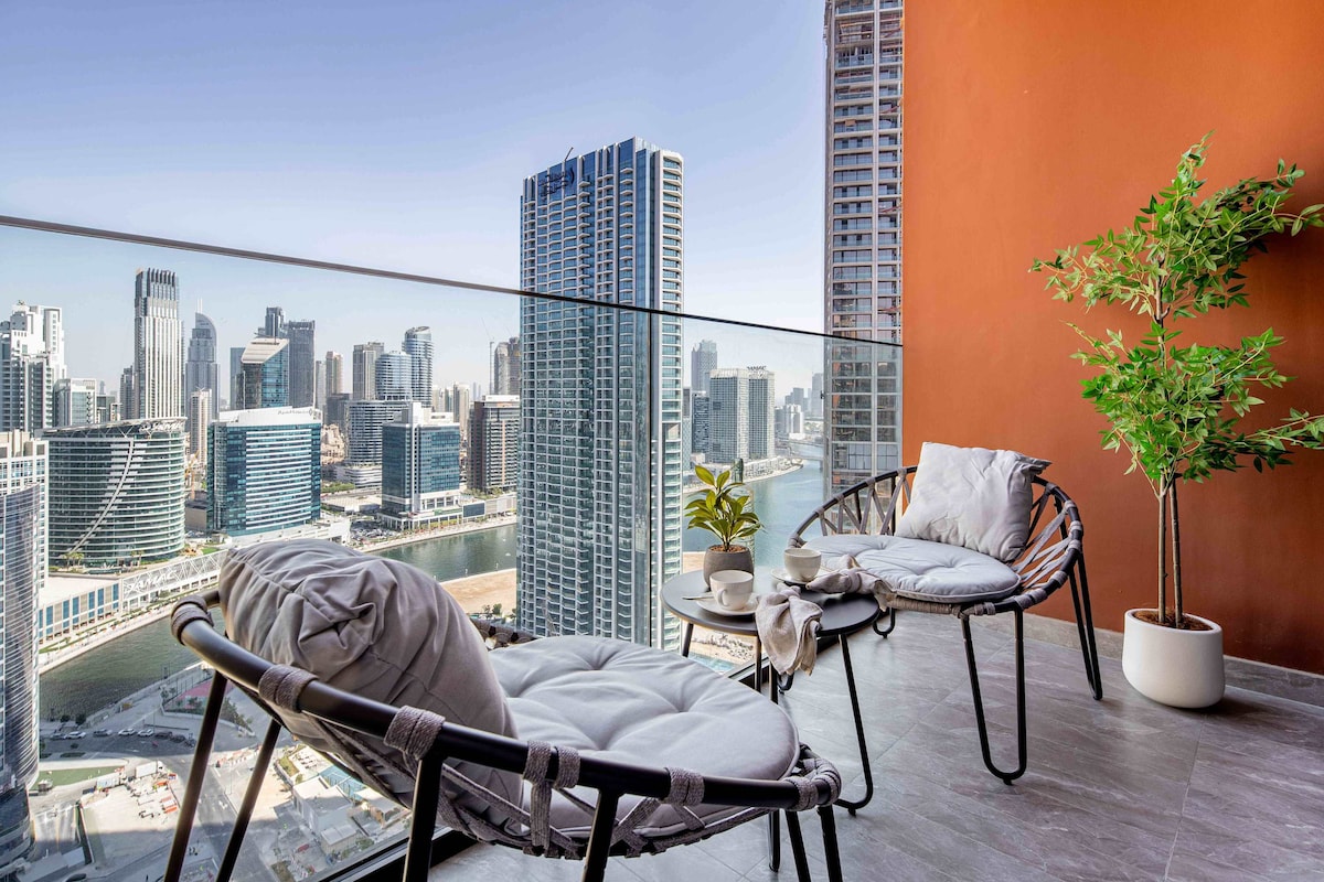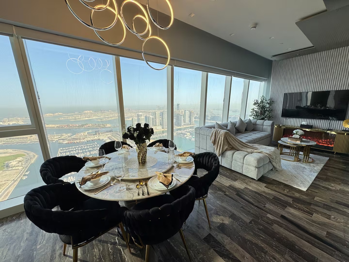 Experience luxury on the 50th floor at the 5 Star Paramount Midtown Hotel and Residence, Dubai near Downtown and Metro. This stylish 2-bedroom, 2-bathroom 110 (sqm) apartment offers stunning views of the Burj Khalifa and ocean. Enjoy high class amenities, a fully equipped kitchen, and a cozy living room. Located in Business Bay, it's minutes from Dubai Mall and top attractions. Sleeps 8 (6 adults + 2 small kids). Includes high-speed Wi-Fi, TVs, private parking, and baby essentials upon request.