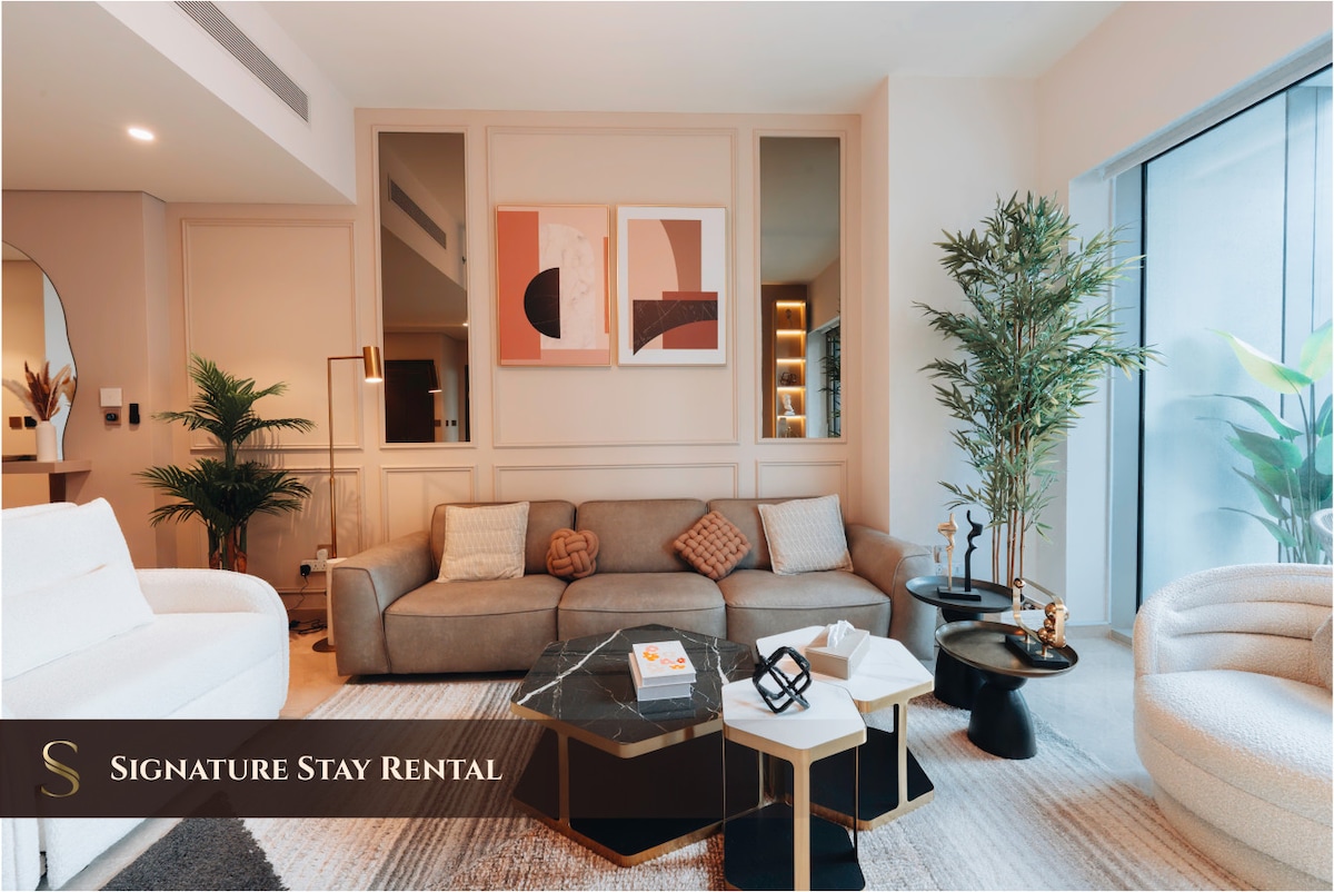 海滨度假屋|俯瞰Burj和运河景观|泳池+桑拿房