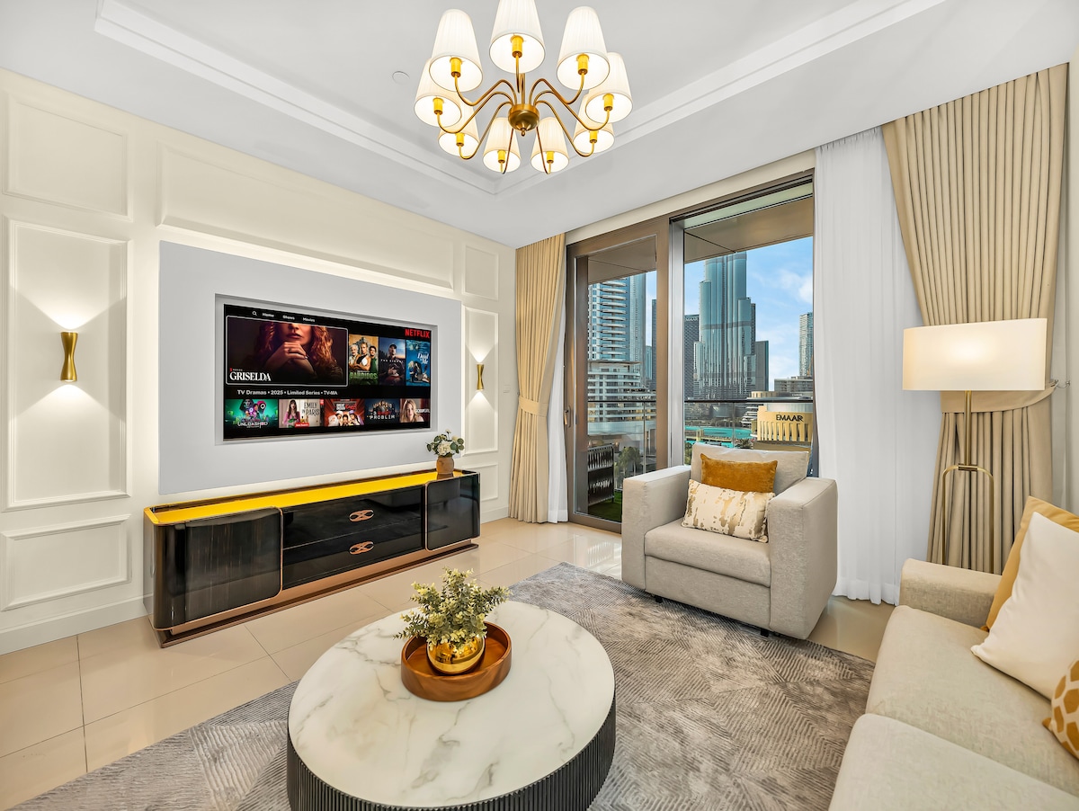 Chic studio in the heart of Dubai with stunning skyline views from your private balcony. Just a 7-minute walk to The Dubai Mall and the iconic Burj Khalifa, you’ll be steps away from world-class shopping, dining, and entertainment. The apartment is fully equipped for business or leisure stays, with luxe hotel-style linens, fast WiFi, a smart TV, and a complete kitchenette. Guests also enjoy free access to the gym and outdoor infinity pool in the building.