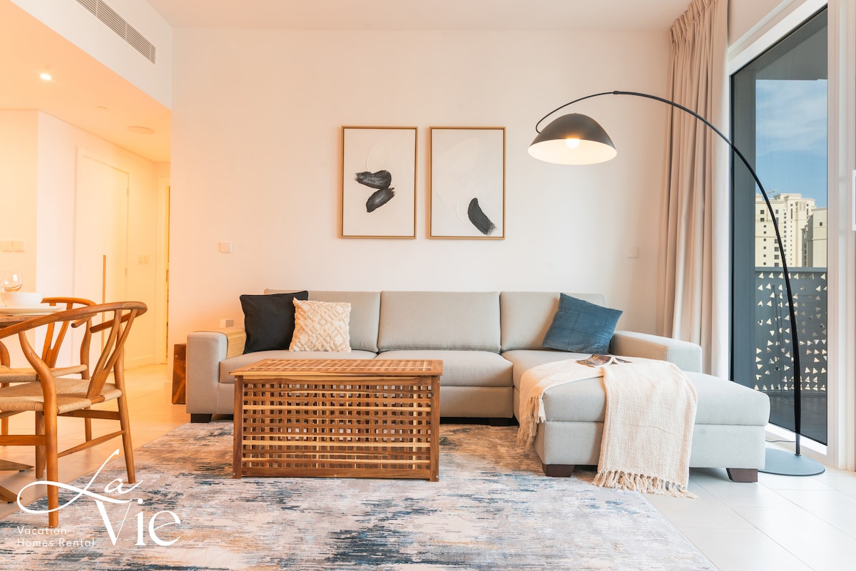 Monthly discounts available! Elevate your stay in this stunning 1BR smart home in JBR, where elegance meets innovation. Featuring a private sauna, breathtaking Marina views, and sophisticated modern design, this apartment offers the ultimate luxury experience. Enjoy seamless living with smart controls, a beautifully styled interior, and top-tier amenities—all just steps from the vibrant JBR beach, world-class dining, and entertainment. Perfect for an unforgettable stay!