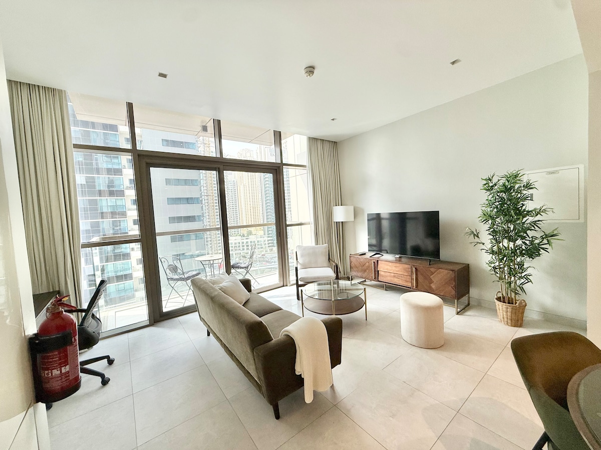 Welcome to your dream retreat in the heart of Dubai Marina! This modern, stylish apartment offers luxury, comfort, and breathtaking skyline and waterfront views. Enjoy a spacious, elegantly furnished living area and all the amenities you need for a relaxing stay. With Marina Mall across the canal, JBR Beach a short walk away, and the Dubai Water Metro on the Promonade, it’s the perfect choice for both business travelers and holiday guests.
