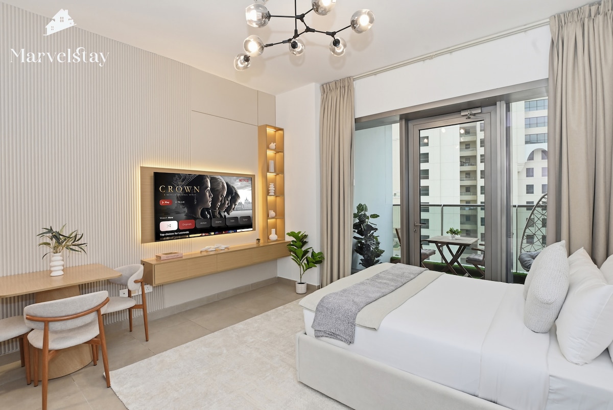 Welcome to Marvel Stay. Enjoy this marvelous studio located at Sparkle Towers in the famous Dubai Marina - the most sought-after tourist hotspot in Dubai. You are in the middle of everything! Walk 5 mins to the popular JBR beach, eat at fine-dining restaurants, stroll on the prominent Dubai Marina Walk or enjoy the building amenities (Pool, Sauna, Gym). Located next to the Tram (Jumeirah Beach Residence Station) which connects to Dubai Metro thus providing transportation convenience.