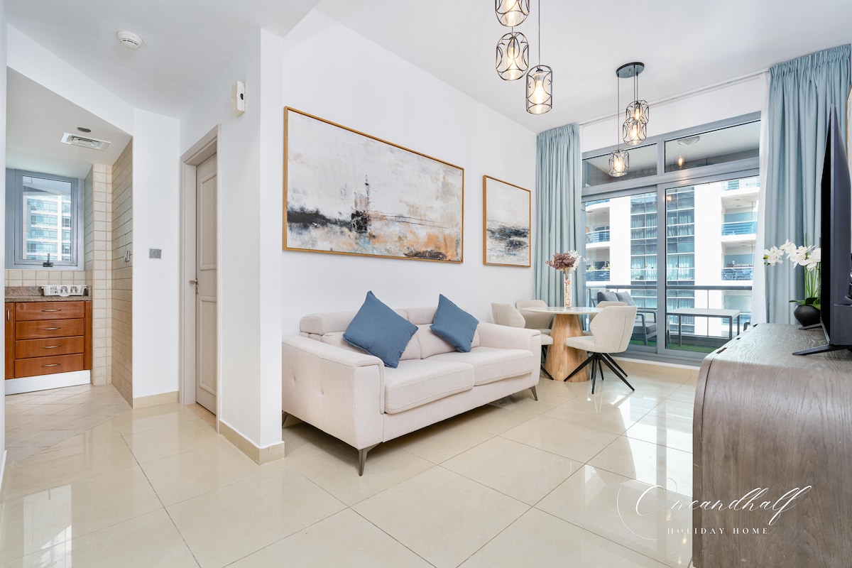 Benvenuti nel nuovissimo appartamento con 4 Posti letto (1 Letto King-Size e 1 Divano-Letto XL comodissimo) e 1.5 bagni, situato nel centro di Dubai Marina. Troverai un rifugio luxury a pochi passi dal mare, dai migliori ristoranti, negozi, intrattenimento, centri commerciali e attrazioni. Avventurati per la città o per la spiaggia da questa posizione privilegiata, poi ritirati nell'appartamento contemporaneo il cui design elegante e la ricca lista dei servizi ti lasceranno a bocca aperta!