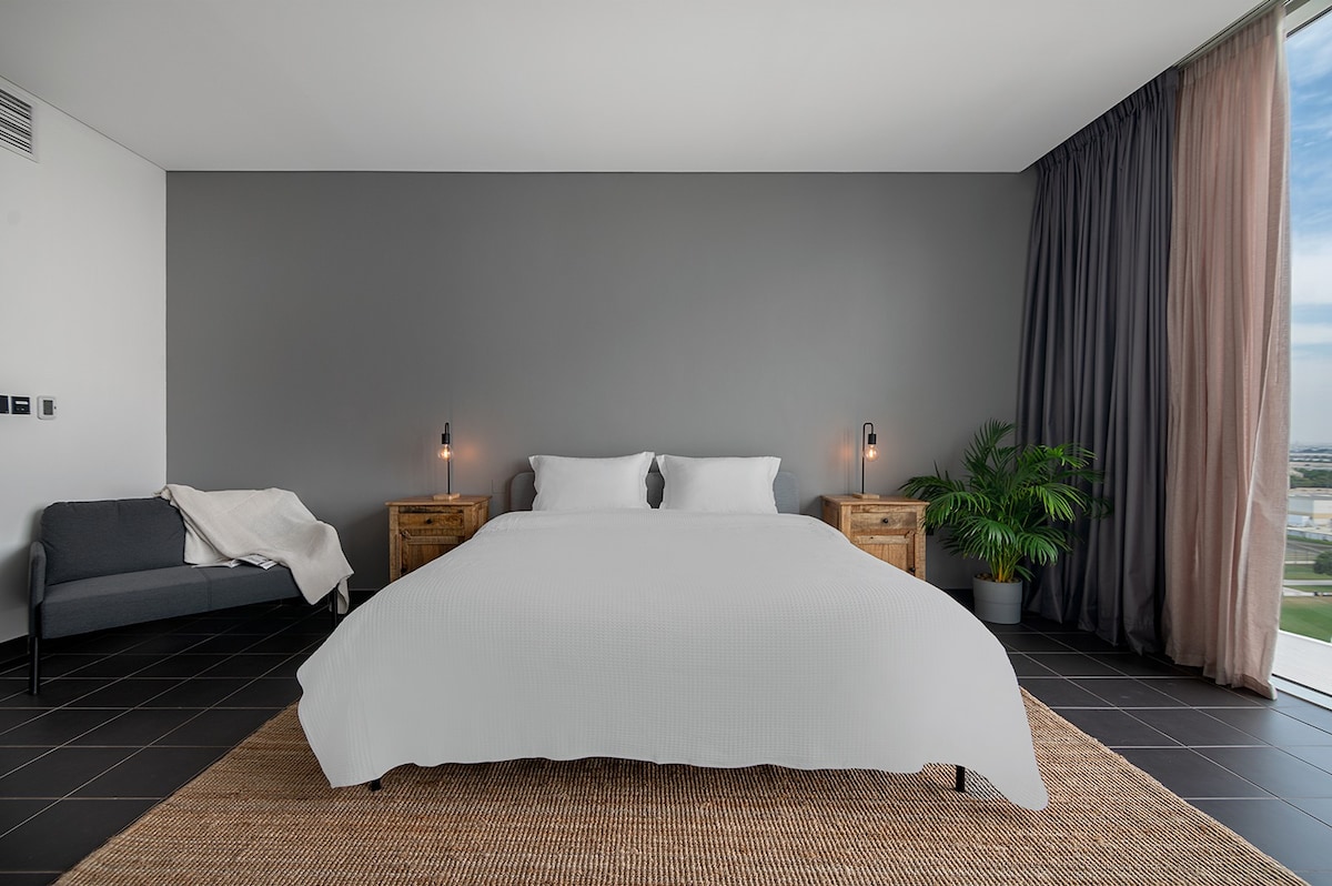 We hope you will love this new stylish living space with floor to ceiling panoramic windows allowing for a bright and airy feel. The property has been decorated in neutral colours with a preference for natural materials and focus on simplicity, sustainability and well-being. Located right in the heart of Dubai Sports city, it has an easy-going vibe, is surrounded by the best sports facilities Dubai can offer and is well connected by major roads to the rest of Dubai.