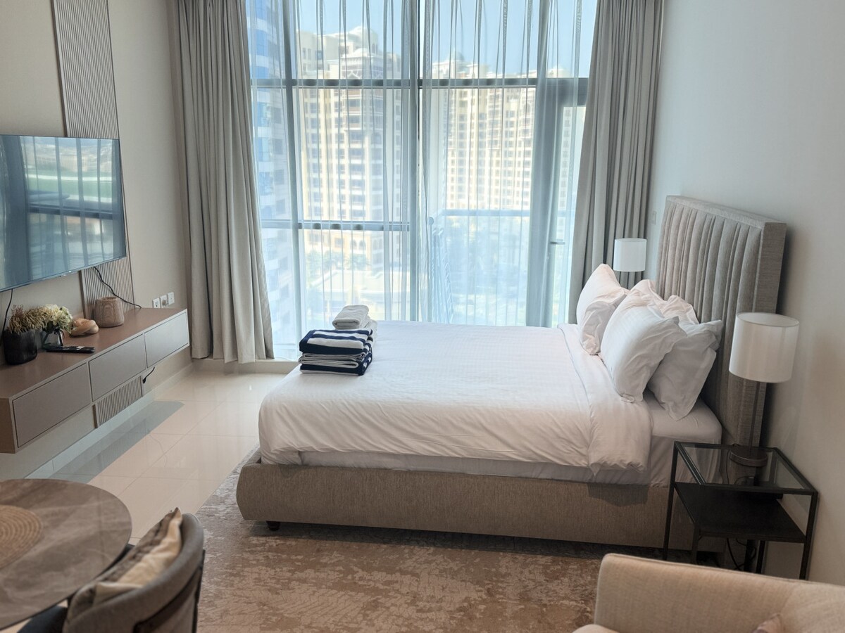 This fantastic brand new Studio apartment is Located at the heart of Jumeirah beach and Marina Walk, Bluewaters Island just beside and the world famous Dubai Eye. In this exclusive location you will find award winning restaurants, from the apartment window you can see the world’s tallest and largest observation wheel is just infront of your bed! Perfect for business trips, travelers or residents that needs a staycation! .