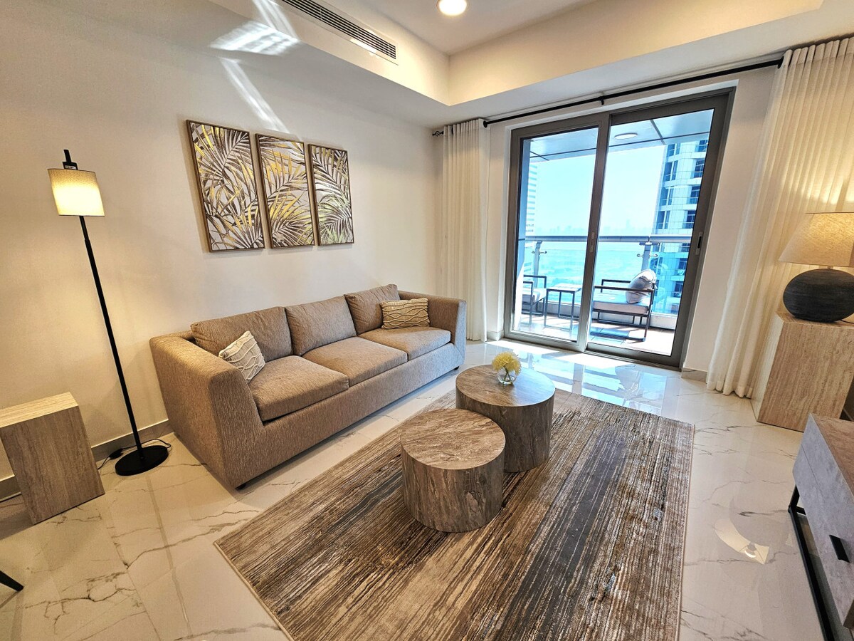 Welcome to a newly designed 1-bedroom apartment located in one of the most exclusive buildings in Dubai Marina. The apartment offers a full Marina view and the interiors were fully curated by professional designers, with a clean, contemporary aesthetic and quality finishes throughout. You'll find a comfortable bedroom, a modern bathroom, and an open living area. The building features outstanding amenities including a pool, gym, co-working spaces, and elegant common areas.