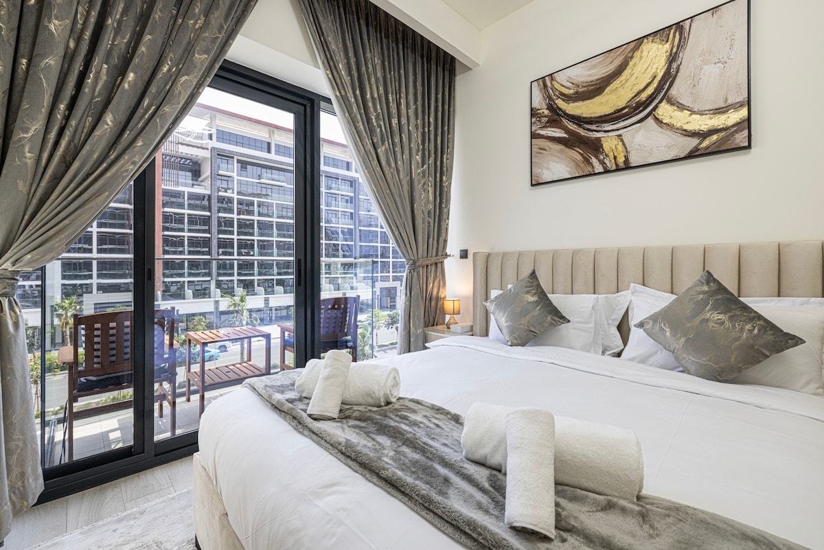 Stay in a uniquely styled 1-bedroom apartment in the luxurious waterfront Palace Residences at Dubai Creek Harbour. This 66 sqm home is fully equipped with everything you need, featuring a bright living area and private balcony with breathtaking skyline views. Guests enjoy premium amenities including a top pool, modern gym, and 24/7 security. Perfectly connected, just 15 minutes from Downtown Dubai and the airport, it’s the ideal base for your Dubai stay.
