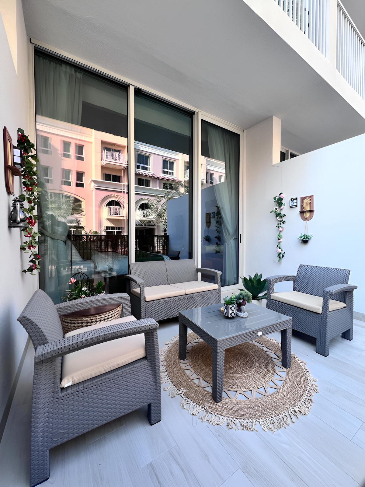 Newly listed stylish studio in a prime area of JVC, featuring a large private patio, perfect for morning coffee, remote work, or evening relaxation. This studio is situated in Luma 21: 5 minutes from Circle Mall 10 minutes from Mall of Emirates & Dubai Marina 12 minutes from Palm Jumeirah 15 minutes from downtown Dubai 25-30 minutes from Dubai International airport Thoughtfully designed, fully equipped and managed by an experienced hospitality host to ensure a comfortable and seamless stay.