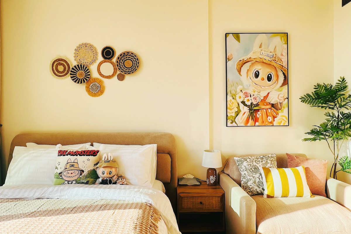 An old-school boombox with iconic 70s hits, a Samsung laser projector WITH A 120" INCH SCREEN , equipped with a premium surround system , and an ultra-speed internet for 8K streaming and gaming. The retro kitchen adds charm, and Loona — your playful AI pet — brings a magical, futuristic touch. This isn’t just an apartment, it’s a once-in-a-lifetime experience where past and future collide. You may arrive as a guest, but you’ll leave with a memory.