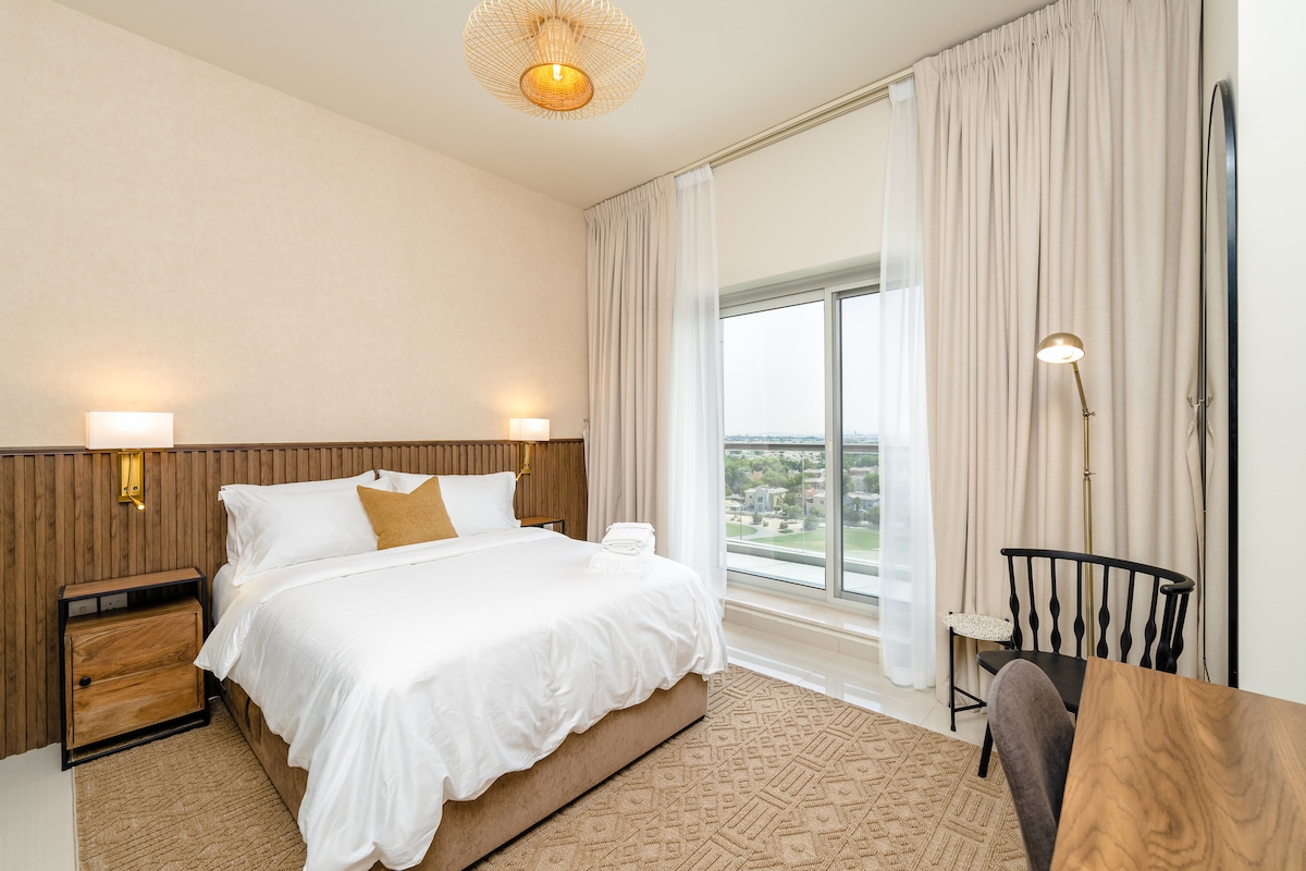 Discover the perfect blend of comfort and convenience in this beautifully designed 2-bedroom, 2-bath apartment located in the vibrant Dubai Sports City. Flooded with natural light and style with modern decor, this home-away-from-home offers everything you need for a relaxing stay—whether you’re here for business or leisure. Guest upon confirmation of your booking, a rental agreement and a mandatory digital KYC form must be completed prior to check-in, as per community and compliance guidelines.