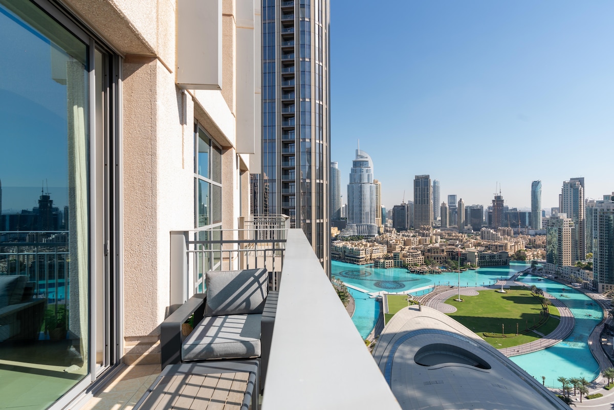 豪华2卧室,可欣赏哈利法塔和喷泉全景