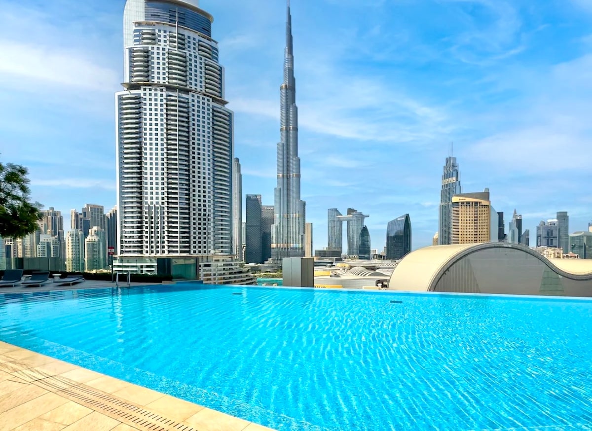 Welcome to my beautiful studio at the Address Dubai Mall. The Space: - Uninterrupted views of the Burj Khalifa - King Size Bed with premium linens & cozy lounge chair - 55 Inch Smart TV - Fully equipped kitchen - Private Balcony - Modern Bathroom with fresh towels & toiletries Guest Access: - Pool with stunning views of Burj - Fitness Center with steam room & spa - Kids club for family friendly fun Location: In the heart of Downtown Dubai , you'll enjoy direct access to Dubai Mall.