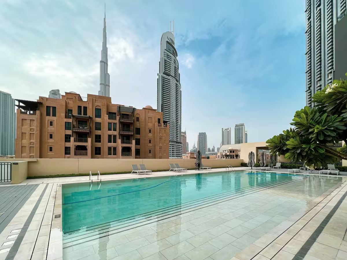 Welcome to your stylish home away from home in the heart of Dubai. This elegant 1-bedroom apartment offers breathtaking views of the Burj Khalifa from the rooftop infinity pool, jacuzzi, and terrace—the perfect backdrop for a truly memorable stay. Whether you're a family looking for comfort and convenience, or a business traveler seeking a high-end base, this space has everything you need. Enjoy modern interiors, premium amenities, and easy access to downtown Dubai.