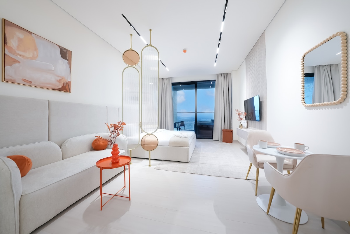 Riviera Getaway - Superior Apartment on the Highest Floor in Azizi ★★★★★ Brand-new 48sm apt finished in marble and completed in August 2025, perched on the highest floor. Elegant and perfectly located: - 10 minutes to Burj Khalifa/Dubai Mall/Downtown; - 15 minutes to Dubai Airport (DXB); - 20 minutes to Marina. This exclusive studio it’s laid out as follows: - Queen-size bed; - 43" TV and Wi-Fi; - Fully equipped kitchen; - Private balcony; - Bright dining/work nook; - Bathroom with shower.