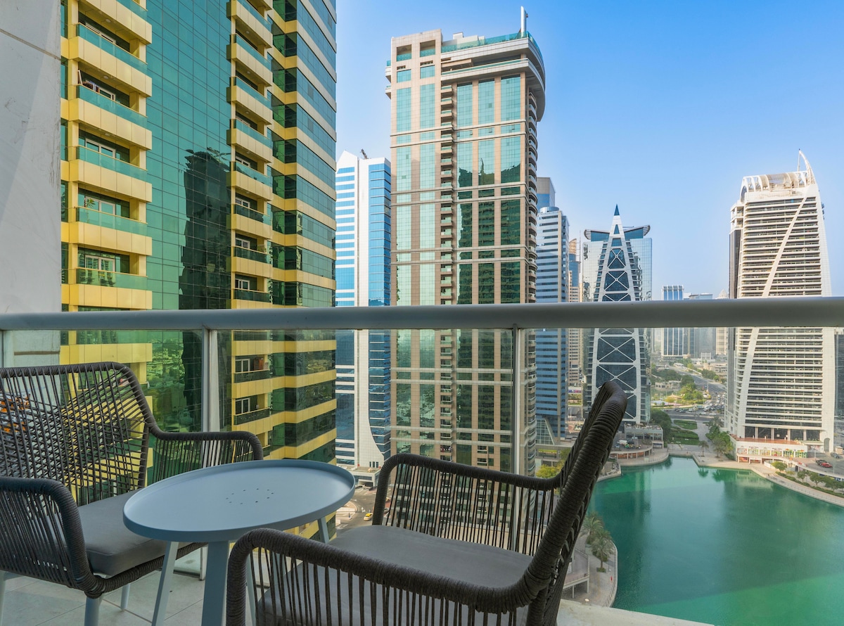 Indulge in luxury at this brand-new, ultra-modern apartment with full lake views and iconic sights of Ain Dubai. Located just 50 meters from the metro, you're only 5 minutes from the Marina and Marina Mall, and a 20-minute walk to the beach. Surrounded by restaurants, supermarkets, and pharmacies—all within a 5-minute walk. Peaceful and stylish, it comfortably hosts 4 guests, offering high-end finishes, private parking, and a truly convenient, upscale stay.