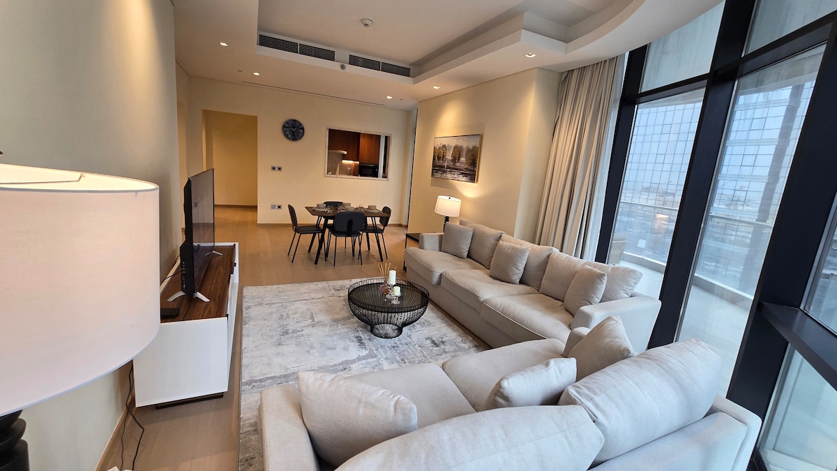 This gorgeous two bedroom apartment is meticulously built to make you feel at home, extravagant and elegant. It is situated in Dubai's most popular and central district, Business Bay. The apartment includes a fully equipped kitchen, a dining area, a modern and pleasant living room with smart tv, two bedrooms with comfortable queen-bed size and a furnished balcony with Burj Khalifa view. This apartment is ideal for people who want to experience modern stays.
