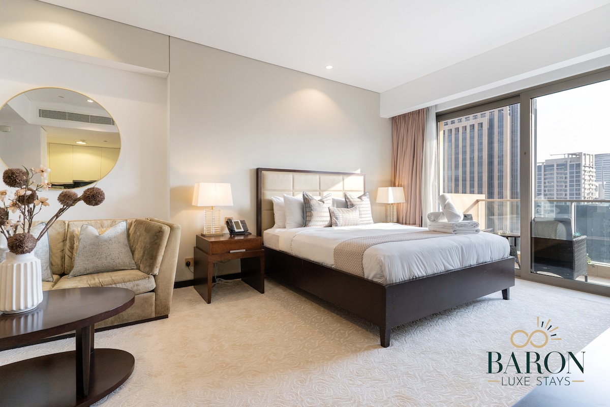 Safe & Fully Managed Stay at the best Address in Marina, located within JW Marriott Marina Hotel, with full access to the hotel's luxurious facilities. Enjoy the pool, gym, and world-class services, all while being directly connected to Marina Mall and easily accessible from Sheikh Zayed Road. The studio apartment boasts stunning city views, a king-size bed, spa-style bathroom, fully-equipped kitchen, TV, and a private balcony.