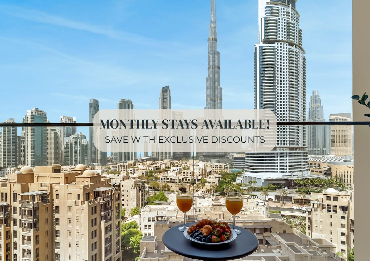 Relax in the stylish 2-bedroom apartment in the center of downtown Dubai with breathtaking views of the Burj Khalifa & Dubai Fountain from Living room, bedroom & private balcony . Located with short 7-10 minute walk to Dubai Mall, Burj Khalifa and Dubai Opera. Whether you're here with family, friends, or on business, this apartment offers the perfect space and amenities for a truly unforgettable experience