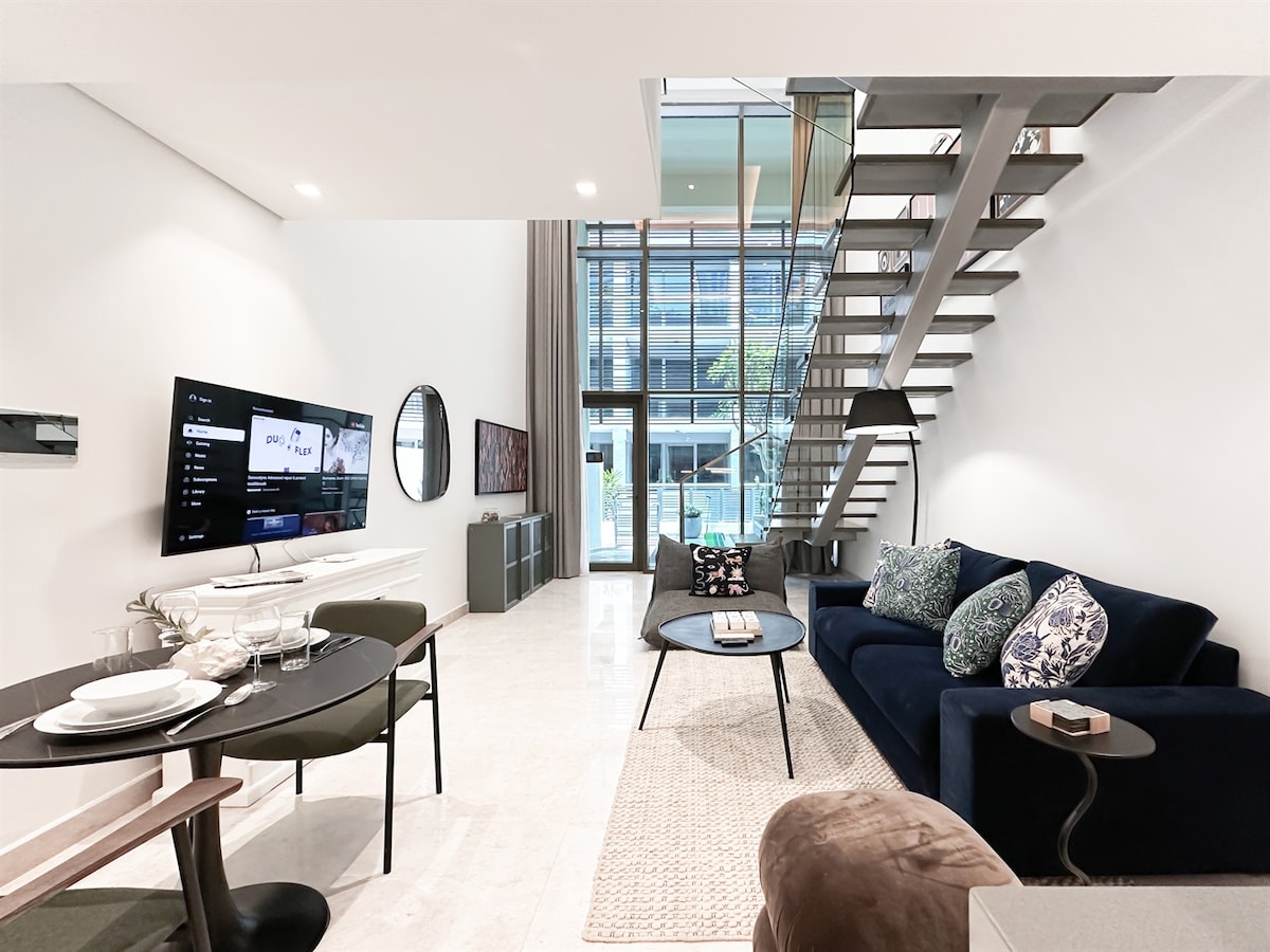 Experience our incredibly bright one-bedroom Corner Duplex Loft Apartment with stunning views of the lake & skyscrapers with floor to ceiling windows centrally located in JLT Dubai next to landmark neighborhood Dubai Marina. It comes with a designated desk area, projector, fully equipped kitchen & large balcony. The loft and JLT neighborhood are pet friendly. Hosted by seasoned Superhost & Airbnb Host Leader in Dubai.
