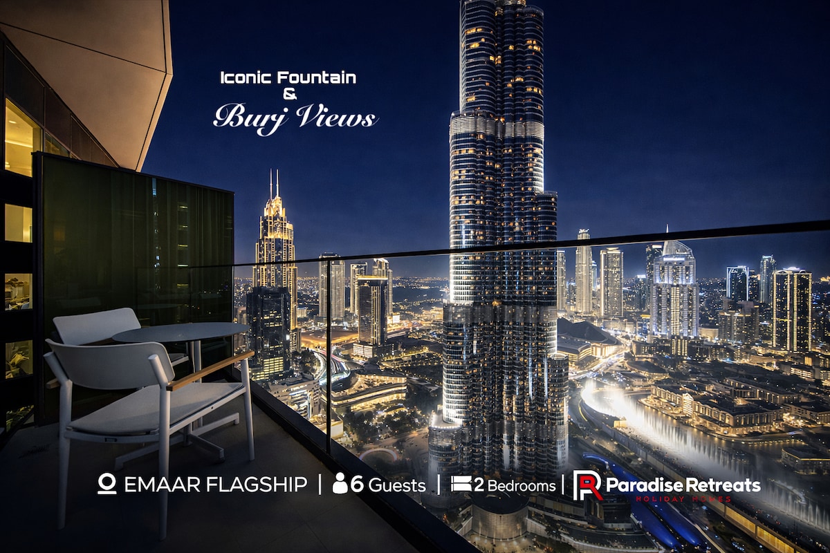 豪华2卧室,享有壮丽的哈利法塔和喷泉景观
